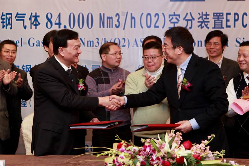 2011年1月30日,我司與寶鋼集團(tuán)氣體營運(yùn)中心、林德工程(杭州)公司在杭州隆重舉行EPC項(xiàng)目簽約儀式。寶鋼集團(tuán)氣體營運(yùn)中心盛中克總經(jīng)理、林德工程(杭州)公司總經(jīng)理詹家方和我司萬軍總經(jīng)理等領(lǐng)導(dǎo)出席了簽約儀式。