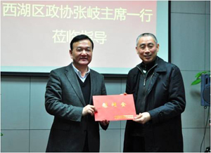 2月10日,杭州市西湖區(qū)政協(xié)主席張岐率區(qū)相關(guān)部門領(lǐng)導(dǎo)一行11人蒞臨公司考察調(diào)研。公司總經(jīng)理萬軍、副總經(jīng)理張雪銘、財(cái)務(wù)負(fù)責(zé)人黃曉鋒和相關(guān)部門負(fù)責(zé)人參加了調(diào)研會。