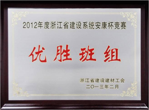 2月28日,我司太倉(cāng)中化環(huán)?;び邢薰?萬噸/年HFC-125配套混合工質(zhì)建設(shè)項(xiàng)目組榮獲2012年度浙江省建設(shè)建材系統(tǒng)“安康杯”競(jìng)賽優(yōu)勝班組榮譽(yù)稱號(hào)。