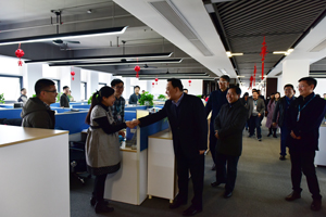海宇熙春金雞去,乾坤生意駿犬來。2018年2月26日(農(nóng)歷正月十一),我們迎來了搬遷新大樓后第一個(gè)農(nóng)歷新年工作日。公司董事長、黨委書記萬軍帶領(lǐng)公司領(lǐng)導(dǎo)班子成員到各樓層辦公區(qū)看望慰問全體員工,并致以新年的祝福。